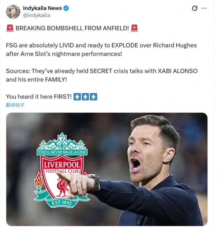 据知名转会博主“绿帽哥”报道,芬威对理查德·休斯非常不满,已经与阿隆索进行秘密谈判。